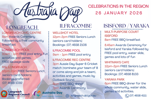 Australia Day Celebrations in the Region 26 Jan 2026 Join us for Australia Day celebrations in the Region Tagged as: , Community events & fundraisers